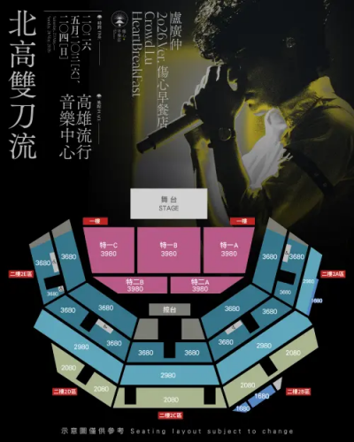 票價:3980、3680、2980、2080、1680、1840 身障票 (全座位,對號入座)