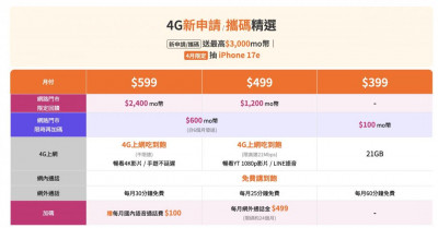標題:三大電信4月隱藏版來了!4G不限速喫到飽回饋後不用499元