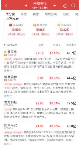 網絡安全板塊由於周末消息疊加利好,當日整體表現也是優於整個市場。截止7月17日收盤,整個板塊漲幅0.85%,漲停家數共3家,封板資金5.45億。