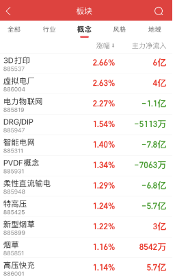 截止7月17日收盤,當日領漲的細分板塊爲3D打印機,虛擬電廠和電力電網,PVDF概念,煙草概念等。