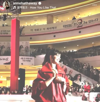在安海瑟薇上傳的影片中,詳細紀錄了此次訪韓的精華片段,從下榻飯店俯瞰的首爾市中心全景、地標63大廈,到日前舉辦的記者會與紅毯盛況都收錄其中。影片巧妙選用BLACKPINK的歌曲〈How You Like That〉,並在內文寫著「We like that!」來做呼應,夢幻聯動當然也引發了全球粉絲關注。