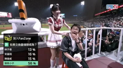 籃籃回憶,2人第一次見面是去年,「一樣也是在本壘後方的位置,那時候有把他抓上來一起應援。他就從那時候開始,瘋狂學中文。」聽到日本鐵粉用流利中文與她對答,籃籃相當驚訝,「他的中文變得這麼好!我把他拉上去應援後,他整個人瘋狂大喊、應援,笑到我跳不下去、一直分心,完全是變成他的主場。」