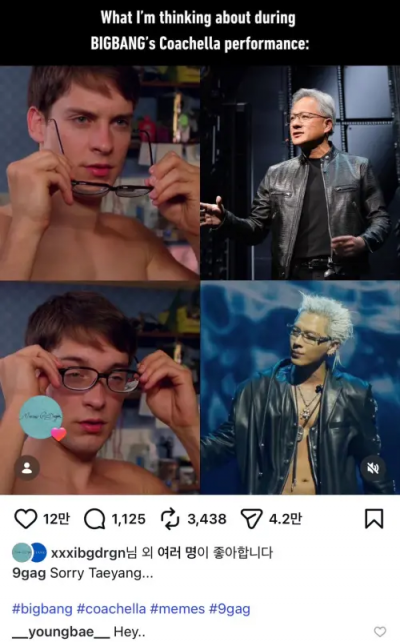 標題:BIGBANG科切拉太陽撞臉黃仁勳!本尊無言回應 連GD也按讚看戲