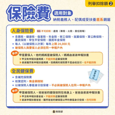 標準扣除額:不論所得高低,都只能固定金額扣除,114年的標準扣除額,單身是13.1萬元,夫妻合併申報是26.2萬元,申報時直接扣除,免附證明文件。