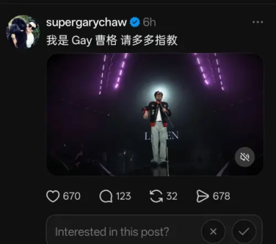 原來曹格在貼文中原本想以英文名字「Gary」介紹自己,卻不小心誤植成「Gay」,形成「我是Gay曹格」的字句,差點不小心把自己給出櫃了,貼文曝光後迅速被截圖轉傳,不少網友看到後直呼太有戲劇效果,也有人笑稱這段「自我介紹」太過直接,讓整起事件在網路上快速擴散。