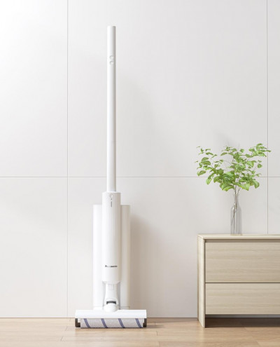 Panasonic無線吸塵器MC-KC1W,具備自動集塵座,兼具收納、充電和清潔集塵盒功能,11,500元。