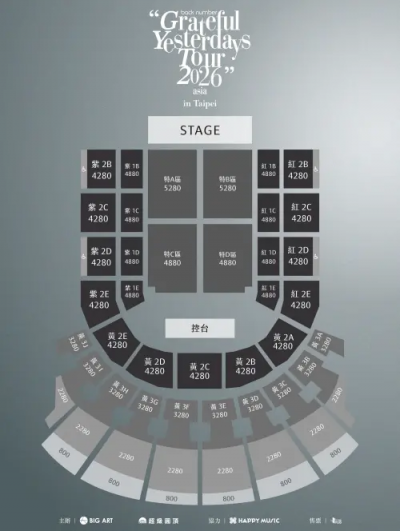 back number小巨蛋演唱會共分為7種票價,5280元、4880元、4280元、3280元、2280元、800元、身障400元,全部採用「實名登記抽選制販售」,且登記後無法取消,已於4月20日下午1點開放在Ticket Plus遠大售票系統登記抽選,想參加的粉絲一定要在4月22日下午1點前到系統完成登記程序,否則有算有錢、有時間也無法得到門票。