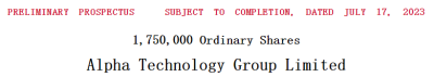 當地時間7月17日,總部位於香港的Techlution Service Limited控股公司Alpha Technology Group Limited(以下簡稱:Alpha )向美國證券交易委員會(SEC)遞交了IPO申請,擬以ATGL爲股票代碼,申請納斯達克上市。披露顯示,該公司最早於今年3月24日向SEC遞交祕密文件。