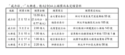 標題:是你嗎?今年威力彩、 大樂透億元頭獎還有6筆未領 開出地點看這
