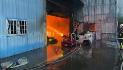 標題:彰化倉庫全面燃燒!鐵皮燒到扭曲變形 消防機器人、無人機滅火