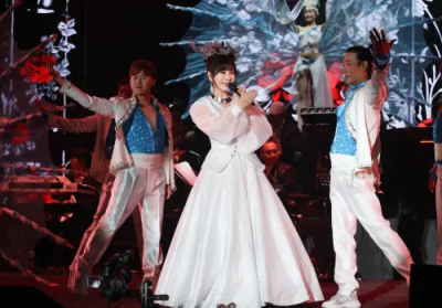 製作團隊耗資200萬,為她打造12套風格迥異的造型,包括湛藍海浪裝、創意和服以及令全場驚艷的白色婚紗。為了應付快速換裝,後台出動6組人馬嚴陣以待,甚至安排在舞台上進行瞬間更衣,視覺效果震撼。