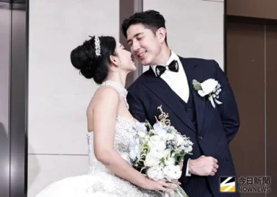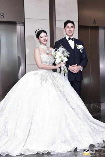 舞陽今稍早一身筆挺,緊牽著閃鑽亮片婚紗的Peggy,緩緩從大們走至媒體受訪區,鎂光燈閃爍不停,現場歡呼聲四起,好不熱鬧,隨後新人接受訪問,接連透露婚宴規模約13桌,花費約90萬元,笑說這天日期「很幸運」,加上天氣晴朗,對2人來說別具意義。