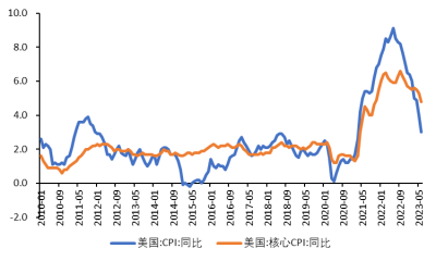 美國通脹大幅降溫,6月CPI漲幅超預期回落:據美國勞工部數據,6月CPI同比上漲3%,預期3.1%,連續12個月漲幅回落,且爲2021年3月以來最小漲幅;6月CPI環比上漲0.2%,預期0.3%。6月核心CPI同比上漲4.8%,爲2021年11月以來最小漲幅,預期5.0%;6月核心CPI環比上漲0.2%,預期0.3%。市場認爲,盡管物價漲幅回落使決策者擔憂緩解,但由於通脹仍顯著高於美聯儲2%的目標,美聯儲仍有可能在7月貨幣政策會議上加息25BP。