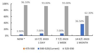 圖19:市場預計7月會議加息25基點的概率爲96.10%