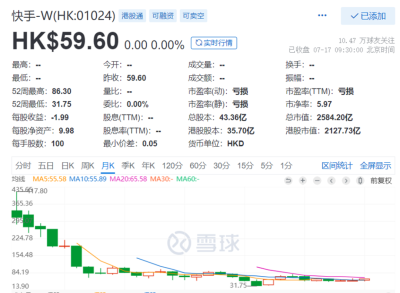 值得注意的是,2022年三季度,快手出現了新一輪下跌,從90元下跌至50元;到2022年10月末,快手股價跌至上市最低點-31.75港元。