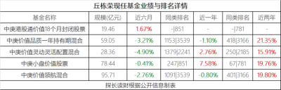 從業績看,丘棟榮的兩只代表作目前回報都超過了130%,中庚價值靈動靈活配置基金的回報也超過了110%,中庚價值品質基金的回報是50%。今年上半年,丘棟榮的基金表現一般,除了年初剛成立的中庚港股通價值收益爲正外,其余4只基金收益均爲負值。當然,考慮到上半年港股和A股低迷的走勢,業績不佳也是可以理解的。