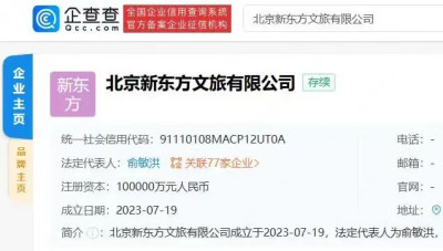 7月19日,北京新東方文旅有限公司成立,注冊資本10億人民幣,法定代表人、董事長爲俞敏洪,經營範圍含旅遊業務、旅遊开發項目策劃咨詢、組織文化藝術交流活動、文藝創作、互聯網銷售等。根據介紹,此次新東方开拓文旅將面向中老年人,主要“提供有文化幸福感、有知識獲得感、有個人追求感的高品質文旅服務。”