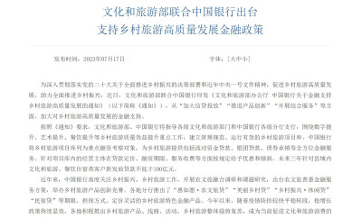 7.文化和旅遊部:文旅部聯合中國銀行出台支持鄉村旅遊高質量發展金融政策