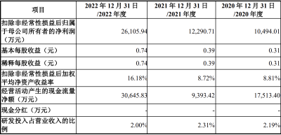 2020年、2021年和2022年,乖寶寵物的收入分別爲20.13億元、25.75億元和33.98億元,淨利潤分別爲1.11億元、1.42億元和2.66億元,扣非後淨利潤分別爲1.05億元、1.23億元和2.61億元。