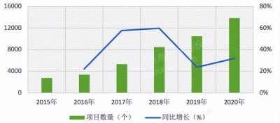 2015-2020年我國創新藥臨牀試驗項目數量、增速 來源:資產信息網 千際投行