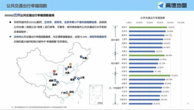 研究發現2023Q2,蘭州、深圳、北京等10個城市的公共交通出行幸福指數較高,說明其公共交通(地面公交+地鐵)運行效率、可靠性,相對其他城市公共交通運行水平的綜合表現較爲優秀。