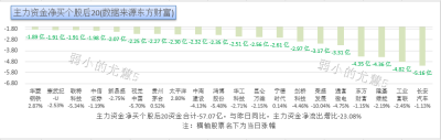 解讀:主力資金淨买個股後20資金合計-57.07億,與昨日同比主力資金淨流出增-23.08%。