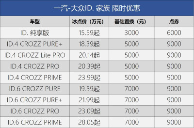 事實上,7月新一輪的降價潮又开始露出苗頭:7月7日,特斯拉推出了引薦和復購獎勵,針對Model 3和Model Y引薦訂單,被引薦人可獲得3500元引薦激勵用於抵扣車輛尾款,引薦人可獲得7000積分獎勵,優惠後,目前起售價爲23.19萬元的Model 3價格爲22.84萬元,起售價爲26.39萬元的Model Y價格爲26.04萬元;同時,一汽-大衆與上汽大衆也分別宣布其旗下ID.系列電動車推出 “限時優惠活動”,其中,ID.3降價3.7萬元,ID.6 CROZZ PURE+ 最高直降8.7萬元,而整個ID. 系列車型售價降低到了12.59萬元起。
