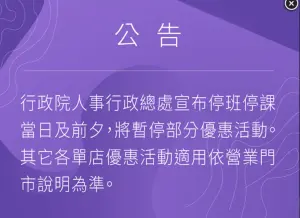 ▲錢櫃的官網立刻跳出公告表示「行政院人事行政總處宣布停班停課當日及前夕,將暫停部分優惠活動」。(圖/錢櫃官網)就在北北基宣布放颱風假之後,錢櫃的官網也立刻跳出公告表示「行政院人事行政總處宣布停班停課當日及前夕,將暫停部分優惠活動」;另一間KTV好樂迪也跳出相似公告「行政院人事行政總處宣布停班停課當日及前夕,本公司各項活動部分優惠將暫停使用」。
