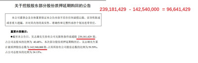 239,181,429 股 - 142,540,000 股 = 剩余96,641,429 股