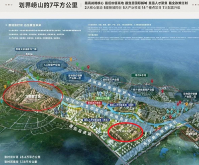 這是一個起點很高而又是一張白紙的區域,如何畫上最美的圖畫?於是人們自然關心這個區域未來的大規劃。目前的規劃已經基本出來了:北邊株洲路是產業創新創業區,以產業導入爲主。南邊沿着張村河,是中央生態居住區和商務區,以城市生活爲主。而宜居的生活區分爲兩大部分,都在張村河南岸,一個是青銀高速兩邊,一個在東部區域。