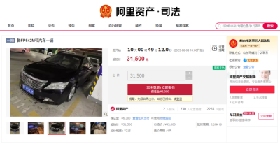 據阿裏資產平台披露,山東省煙台市芝罘區人民法院將於2023年8月8日10時起至2023年8月9日10時止(延時除外)在阿裏資產上進行公开拍賣活動,拍賣標的爲車牌爲魯FP542M的豐田牌汽車一輛。