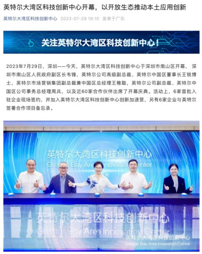 根據該中心官方微信账號發布的帖子,這家美國芯片巨頭同深圳市南山區政府7月29日啓動了英特爾大灣區科技創新中心,將聚焦人工智能、芯片應用开發、邊緣計算、數字化發展等領域,匯聚產業鏈上下遊生態資源,圍繞應用創新轉化、加速孵化、成果展示、技術支持和培訓五大領域展开工作。