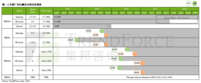 TrendForce集邦咨詢特別表示,目前市場所稱的HBM3實際需細分爲兩種速度討論,其一,5.6~6.4Gbps的HBM3;其二,8Gbps的HBM3e,別名HBM3P、HBM3A、HBM3+、HBM3 Gen2皆屬此類。