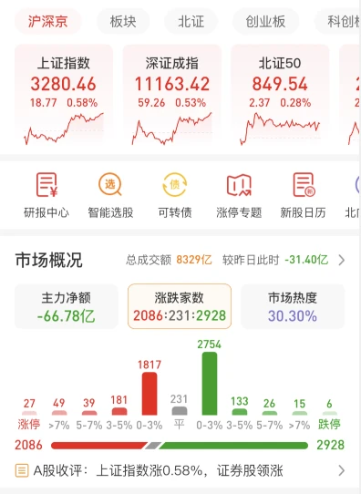 8月3日滬深二市低开高走,早盤三大指數低开,隨後寬幅震蕩,半小時後轉爲窄幅展當,午後指數快速拉升,情緒被帶動。滬指收報3280.46點,漲幅0.58%;深成指報11163.42點,漲幅0.53%;創業板指報2241.98點,漲幅1.06%。