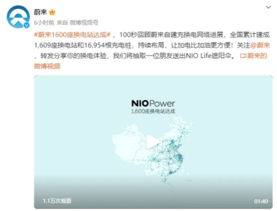 蔚來1600座換電站達成