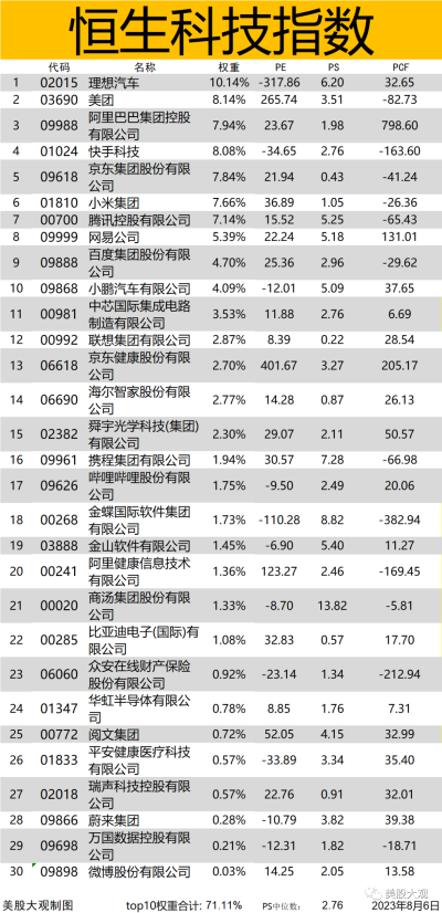 標題:美股大觀|136周報,理想汽車登恆生科技指數權重第一