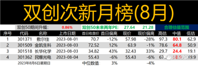 8月第一周上市新股,中位數現價偏離度失真,我認爲301371低估,而301518高估。301509/301362則與估值模型較爲吻合。建議關注敷爾佳。