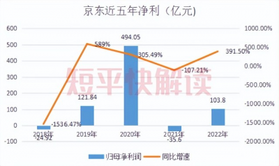 據短平快解讀了解,2022年,京東收入首次突破萬億大關,實現營業收入10462億元,同比增長9.9%,歸母淨利潤104億元,同比扭虧爲盈。