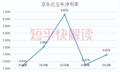 2018年至2022年,京東的淨利率分別爲-0.61%、2.06%、6.62%、-0.47%、0.93%,總體呈現波動趨勢,而2022年淨利率與2020年差距巨大,也不及2019年淨利率的一半。