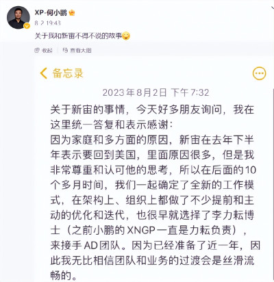 在吳新宙帶領下,該战略順利推拿,如今小鵬同一個軟件多平台同時推送,可謂是吳新宙打下的基礎。雖然何小鵬在微博上表示,XNGP業務一直是李力耕博士負責,但市場難免擔心,准備了一年的李力耕博士能否和吳新宙一樣做到統籌全平台業務。