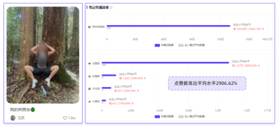 初級達人 @瓜皮 定期拜訪《我的樹朋友》,點贊數高出平均水平2906.62%,數據表現不俗。筆記內容展示人與樹的友好互動、雙向奔赴,蕴藏「自由無拘束」情緒,契合時下的情感訴求,引發評論區共振。