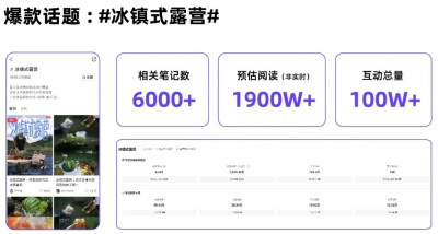 大衆露營風起的第三年,一種新型的露營方式在小紅書被發掘。千瓜數據顯示,冰鎮式露營相關內容在近一個月內互動量達近百萬,筆記數突破6000篇。小紅書官方話題#冰鎮式露營#瀏覽量達4500W+。