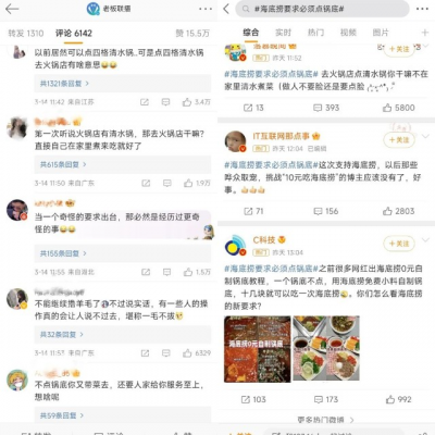 服務开始縮水 和當年食材漲價、不再免費提供牛肉粒不同,這次海底撈不讓單點清水鍋,多數網友拍手叫好。 “這次我支持海底撈”“太多人想了”“四個清水鍋幹嘛不回家自己用白水煮?”“有一些人的操作堪稱一毛不拔”“當一個奇怪的要求出台,那必然是經歷過更奇怪的事”。