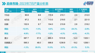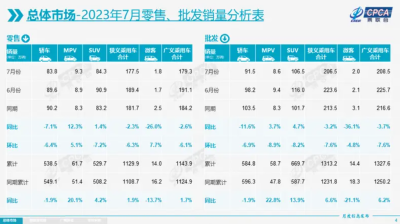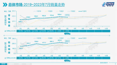 據乘用車市場信息聯席會(乘聯會)最新零售銷量數據統計,2023年7月乘用車市場零售達到177.5萬輛,同比下降2.3%,環比下降6.3%。7月零售是歷史次新高,走勢極強。今年以來乘用車市場累計零售1,129.9萬輛,同比增長1.9%。