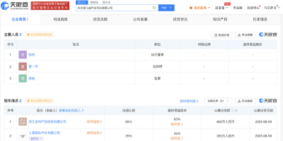 股東信息顯示,該公司由浙江吉利產投控股有限公司與百度旗下上海冪航汽車有限公司共同持股。