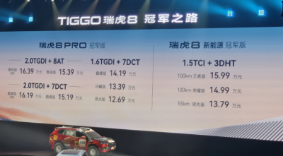 瑞虎8 PRO新能源冠軍版上市,售價13.79萬元起