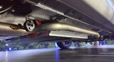 車尾部分的諜照並不清晰,不過後翼子板處曝光的充電接口表明該車支持大功率快充,概念車中上翹的鴨尾造型改爲更誇張的電動尾翼,尾燈樣式和概念車一致,採用薰黑的貫穿式設計,並在兩端向下延伸,和車頭的風格相呼應。