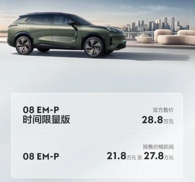 領克汽車正式公布了領克 08 的預售價格。據悉,新車共推出五款配置車型,預售價爲 21.8 萬元-28.8 萬元,並且新車還推出了 1008 量限量版車型。