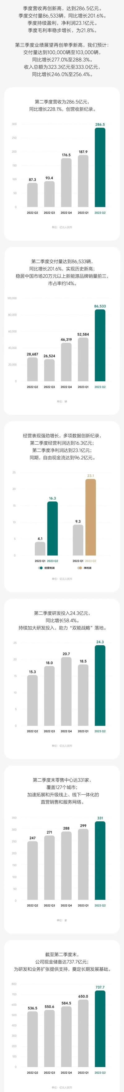營收286.5億元/同比增長228.1% 理想汽車2023年二季度財報