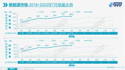 7月新能源車市場零售64.1萬輛,同比增長31.9%,環比下降3.6%。今年以來累計零售372.5萬輛,同比增長36.3%。